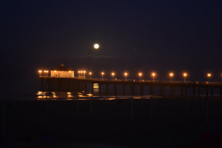 David and I went down to the beach this morning to run and because the moon was full and bright, we brought the camera. I really, really, really wanted my shots of the moon behind a lifeguard tower to turn out, but it was still too dark outside and I had a hard time finding a stationary place to set the camera so as not to blur it. So I had to settle for these pictures.