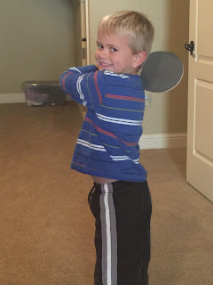 Tanner and I played "baseball" in the house every day. Usually a FEW times a day. I would toss ping pong balls to him and he would hit them and then run around the homemade bases.
